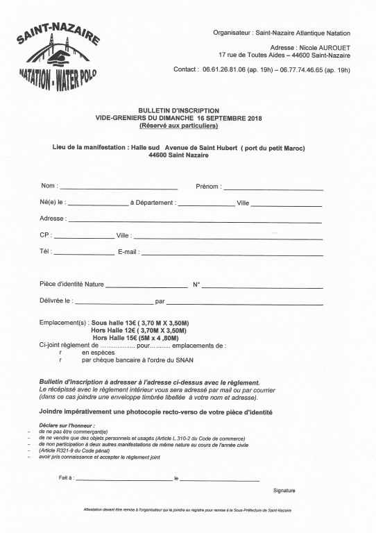 11 eme VIDE GRENIER du SNAN( Saint Nazaire Atlantique Natation)