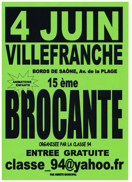 Cette brocante a lieu chaque année le 1er Dimanche de Juin, sur les bords de Saône.