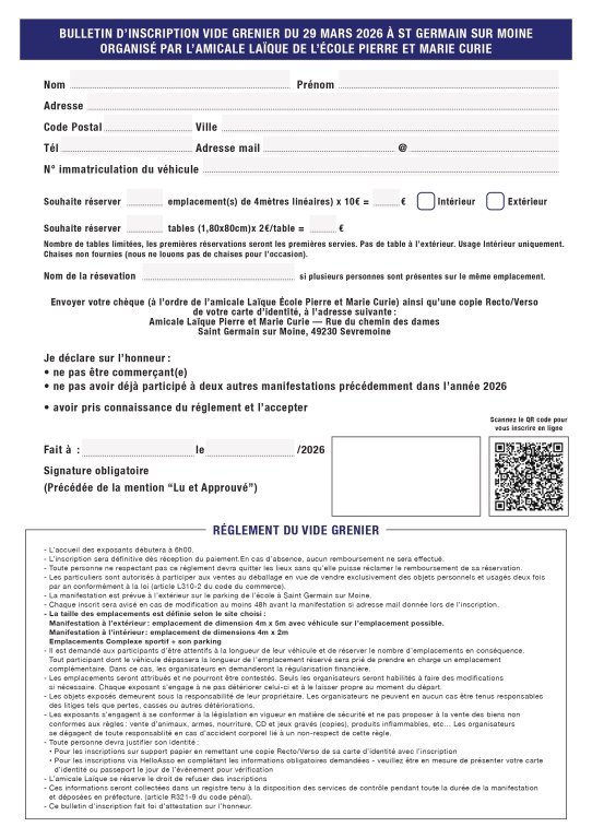 Lien HelloAsso : https://www.helloasso.com/associations/amicale-laique-saint-germain-sur-moine/evenements/vide-grenier-st-germain-sur-moine-dimanche-29-mars