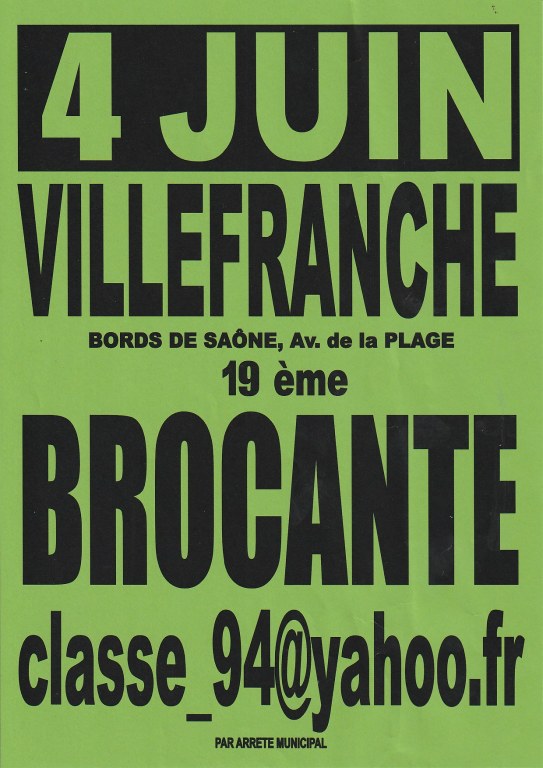 Cette brocante a lieu chaque année le 1er Dimanche de Juin, sur les bords de Saône.