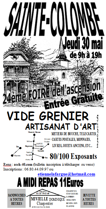 Le jeudi 30 mai 2019, le club de basket ASCH organise sa 24ème foire de l'ascension à SAINTE COLOMBE (Landes).