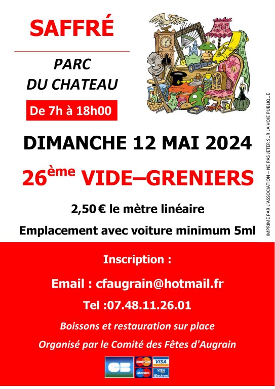 Le Comité des Fêtes d'Augrain organise son 26ème vide greniers dans le parc du château.