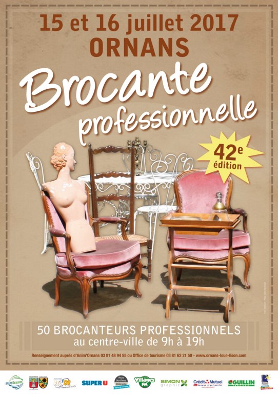 La brocante professionnelle est organisée par l'Association Anim'Ornans et aura lieu les 15 et 16 juillet 2017 de 9h à 19h au centre-ville d'Ornans.