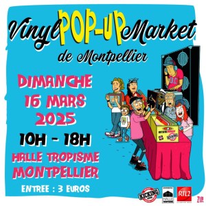 Dimanche 16 Mars, de 10h à 18h, la Halle Tropisme accueille le 9° Vinyl Pop-Up Market de Montpellier. Venez chiner parmi des dizaines de milliers de 45T, 33T, CD, DVD neufs et d'occasion, et autres accessoires et produits dérivés présentés par de nombreu.ses exposant.es, professionnel.les, particulier.es et associations.