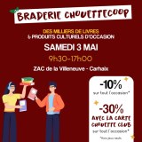 ChouetteCoop organise une braderie exceptionnelle de livres et de produits culturels d'occasion dimanche 14 décembre, de 9h00 à 18h30. Des milliers de livres à petits prix, mais aussi des BD, mangas, DVD, CD, vinyles, jeux seront disponibles, ainsi qu'un rayon avec du matériel de...