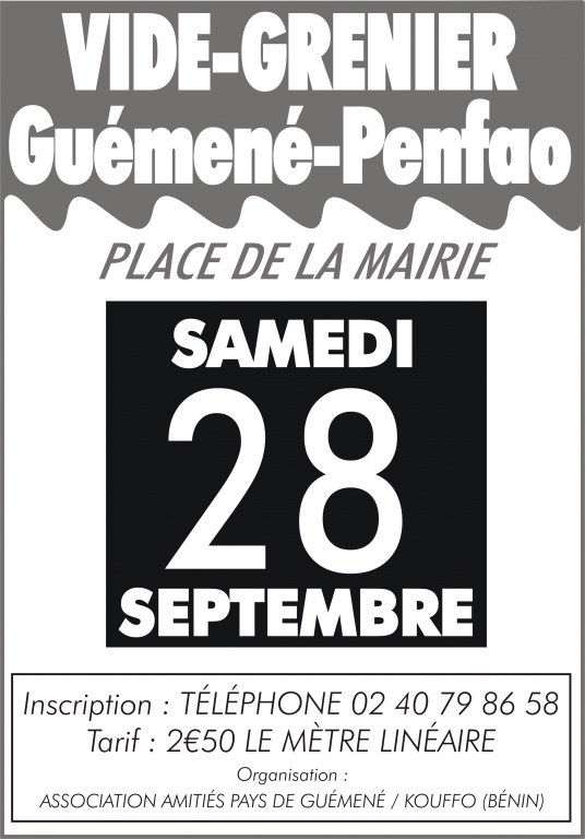 Cette page concerne les brocantes et vide greniers de Amitiés Pays de Guémené - Kouffo Rechercher dans la catégorie : Vide grenier Rechercher dans la catégorie : pays, kouffo, guemene, amities |