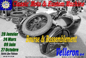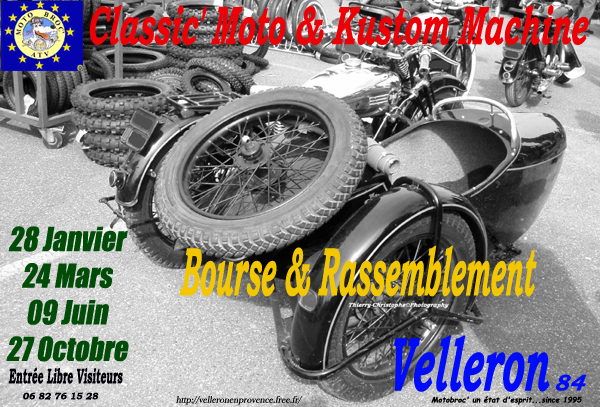Bourse et rassemblement auto-moto organisés à VELLERON 84740 par l'association Motobroc' depuis 1995.