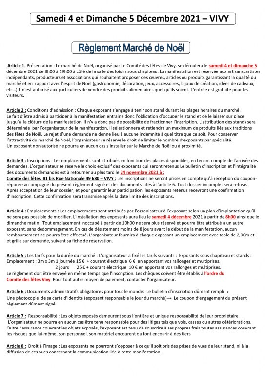 Le comité des fêtes organise sa bourse aux jouets, vêtements puériculture, le samedi 4 et dimanche 5 décembre. Les exposants pourront se mettre en place à partir de 8h00 et ouverture au public à 9h00. Pour le marché de Noêl idem sur 2 jours. Pour vous inscrire en tant qu'exposant, veuillez faire votre demande par mail ou par tél.