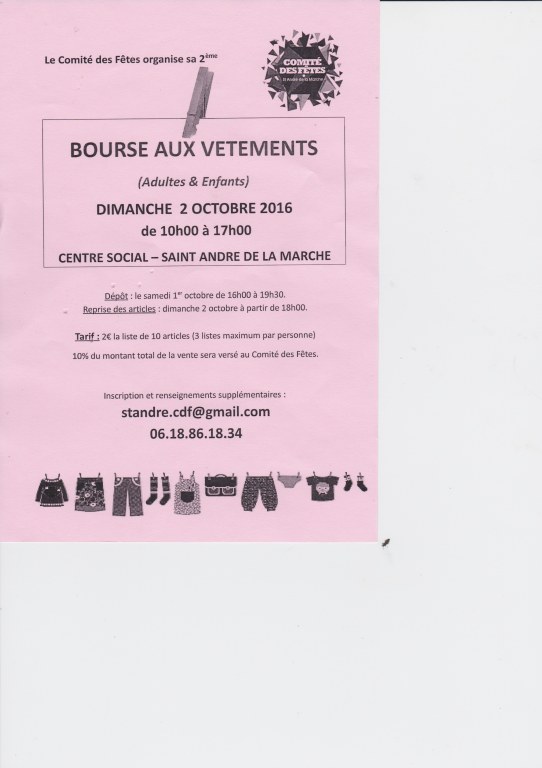 Cette page concerne les brocantes et vide greniers de Bourse aux vêtements Rechercher dans la catégorie : Bourse aux vêtements Rechercher dans la catégorie : vetements, bourse |
