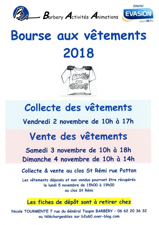 Dépôt des vêtements le vendredi 2 novembre de 10h à 17h (possibilité de pré-inscription voir sur notre site)