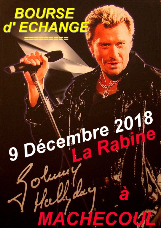 BOURSE DE COLLECTIONS POUR LES FANS DE JOHNNY HALLYDAY. EN HOMMAGE DU PREMIER ANNIVERSAIRE DE SA MORT. DISQUES VINYLS. CD. DVD. COFFRETS. LIVRES. OBJETS DIVERS. TARIF DE L'ENTREE POUR ADULTE : 1€