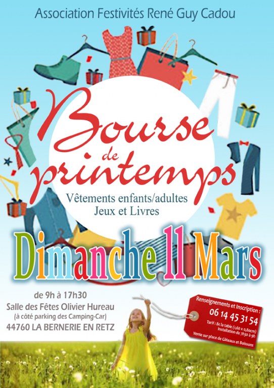 Bourse aux vêtements enfants/adultes, jeux et livres organisée par l'Association Festivités René Guy Cadou - dimanche 11 mars de 9h à 17h30 - Salle des Fêtes Olivier Hureau à la Bernerie en Retz (44760)