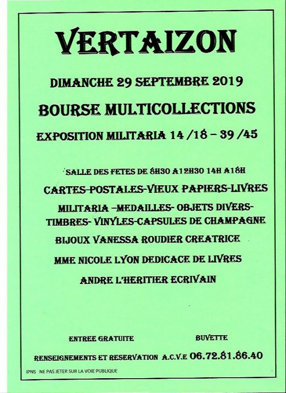 Cette page concerne les brocantes et vide greniers de Bourse multi collections Rechercher dans la catégorie : Bourse de collections diverses Rechercher dans la catégorie : bourse, collections, multi |