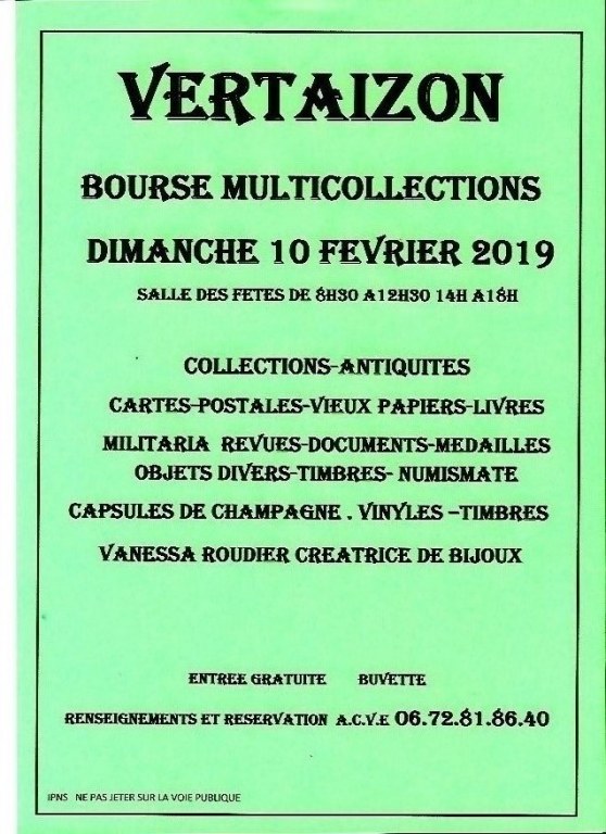 Cette page concerne les brocantes et vide greniers de Bourse multicollections Rechercher dans la catégorie : Bourse de collections diverses Rechercher dans la catégorie : multicollections, bourse |