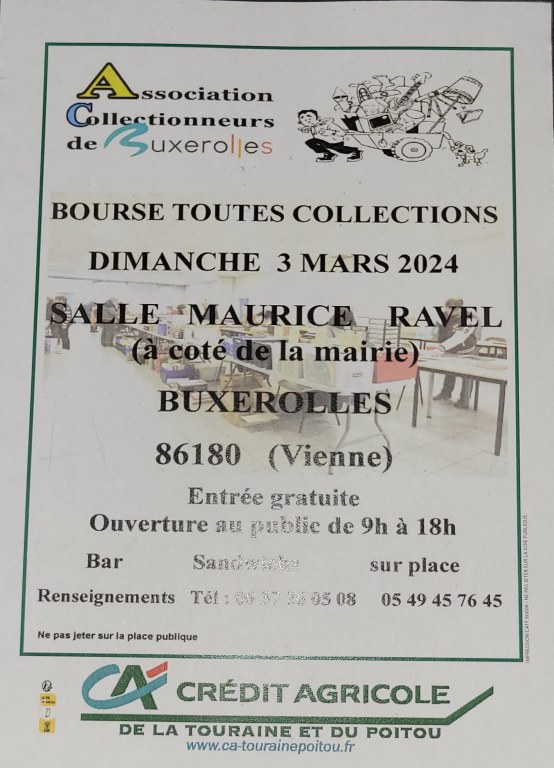 Bourse annuelle toutes collections organisée par l'Association des Collectionneurs de Buxerolles.