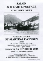 SAINT MARTIN LE VINOUX (1 km Nord de Grenoble) Salon de la carte postale et vieux papiers - Salle des Moaïs, 47 Avenue du Général Leclerc - 9h à 18h - Intérieur - Entrée gratuite 18 exp. (Professionnels) Tel : 04-76-85-26-82 ORG: "CLUB CARTOPHILE DAUPHINOIS...