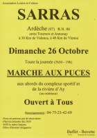 SARRAS (entre Tournon et Annonay - RN 86 -) Marché aux Puces - aux abords de la rivière d'Ay - 5h-19h - Extérieur - Entrée gratuite 160 exp. (Professionnels + Particuliers) nbsp;+ Habitants) Tel : 04-75-23-45-33 ORG: ASSOCIATION "LOISIRS ET CULTURE...