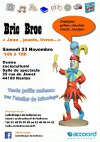 NANTES (Quartier Ouest) "Bric Broc" jeux, jouets, livres - Salle de Spectacle du Centre Socioculturel Bellevue - Accoord 25 Rue Jamet , - 14h à 17h30 - Intérieur - Entrée gratuite 40 exp. (Particuliers + Habitants) Tel : 02-40-95-08-49 animations, chata...