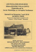 Samedi 13 octobre 2018 93 - Seine-Saint-Denis 19ème Bourse Multicollections Timbres, Cartes Postales, etc... . Mairie - Espace des Arts Tél. 01 48 48 37 44 et 06 87 72 51 46 Organisée par le Cercle Philatélique et Cartophile Pavillonnais Fréquentation / Nombre d'exposants : 50 environs...