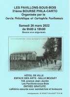 Les Pavillons sous Bois (7 km de Paris, porte de Pantin) 26ème Bourse Phila Carto - Mairie des Pavillons sous Bois - Espace des Arts - 9h à 18h - Intérieur - Entrée gratuite 20 exp. (Professionnels + Particuliers) nbsp;+ Habitants + Associ ation) Tel ...