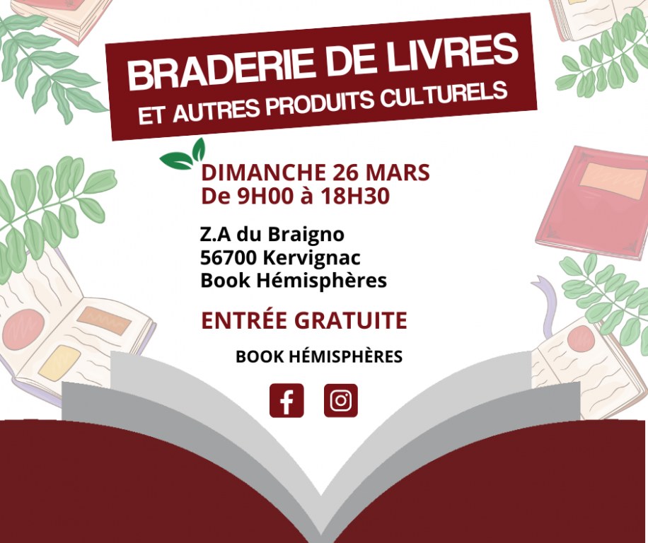 Notre braderie mensuelle de Kervignac se déroule ce dimanche 26 mars dans nos locaux Book Hémisphères. Cette braderie met à l'honneur la poésie, la nature mais aussi l'écologie. ????