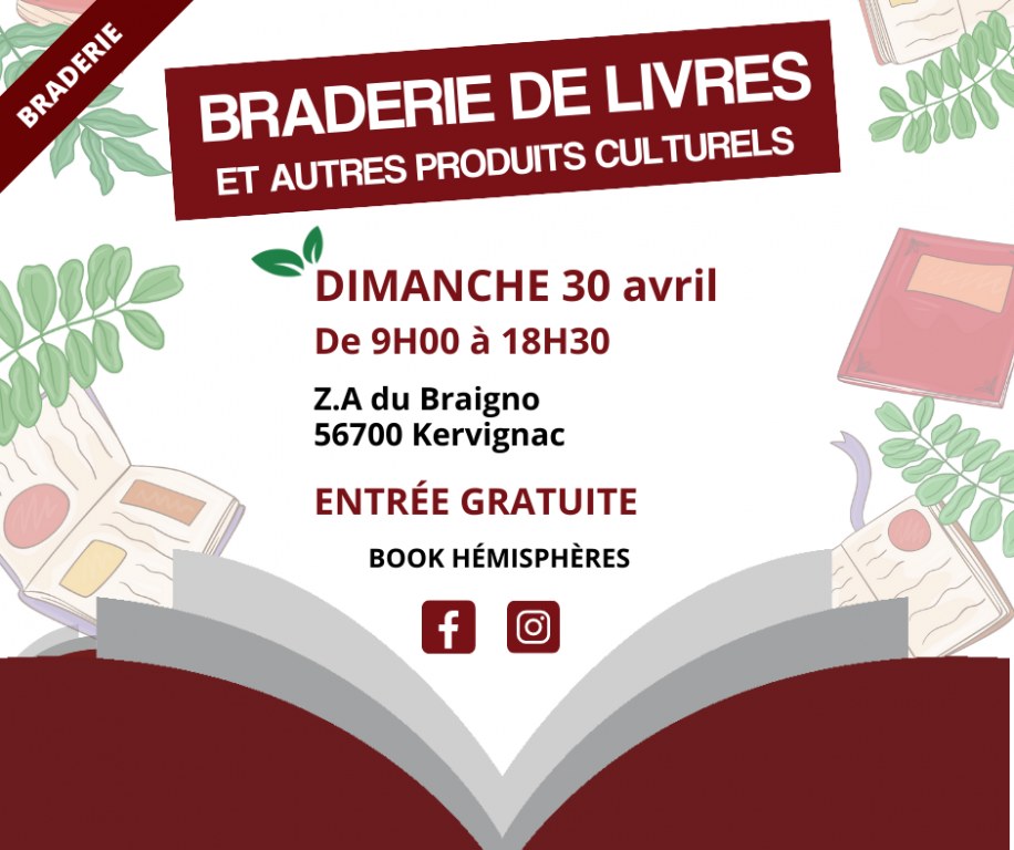 Notre braderie mensuelle de Kervignac se déroule ce dimanche 30 avril dans nos locaux Book Hémisphères.