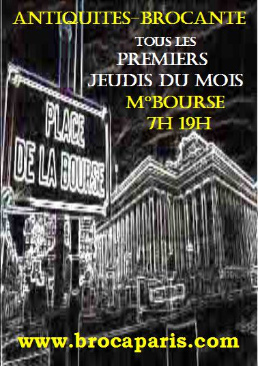 La Brocante professionnelle de la Place de la Bourse rassemble tous les premiers jeudis du mois une cinquantaine de professionnels généralistes ou spécialisés. Détails et inscriptions sur le sitre http://www.antiquites-brocante.eu ou au 06 45 10 28 03 & 06 87 55 64 78.