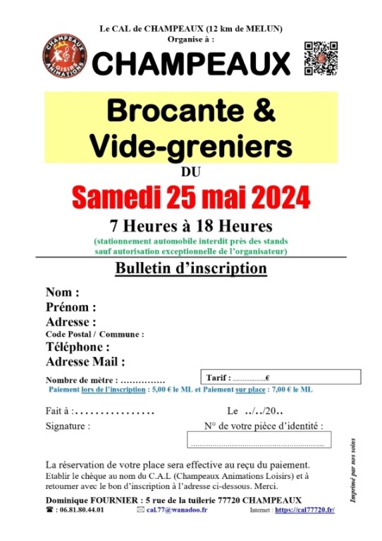 BROCANTE et VIDE-GRENIERS à CHAMPEAUX (77), le 25 mai 2024