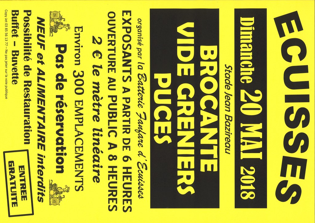 Ecuisses, Dimache 20 Mai, brocante, vide grenier stade Jean Bazireau ,rue des Vernes à Ecuisses.