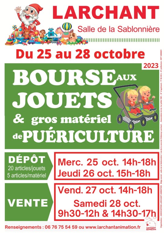 Bourse aux jouets et gros puéricultures salle Sablonnière 77760 LARCHANT