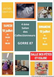 Le 4ème Salon des Collectionneurs ouvrira ses portes le samedi 12 Juillet à partir de 14 h30 dans la Salle des Fêtes et en l'Église.