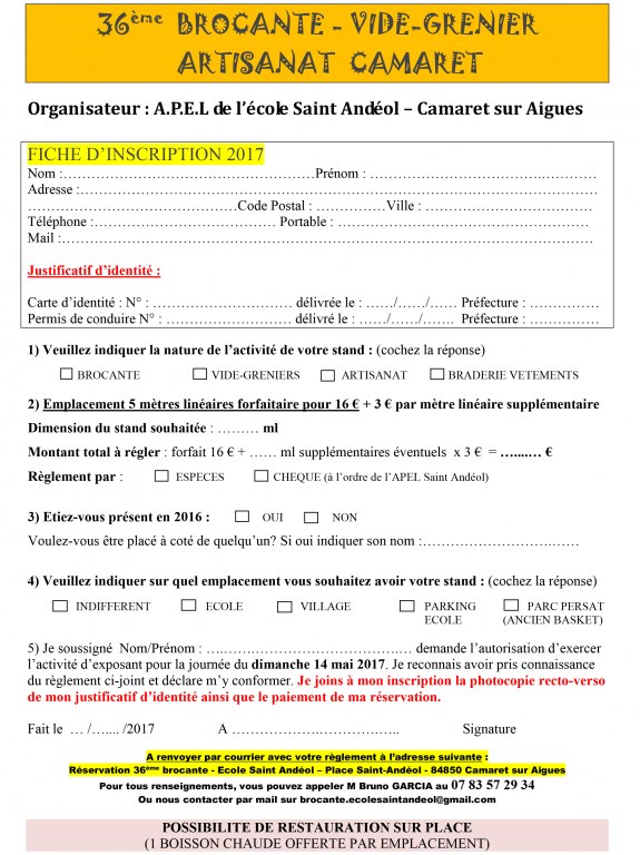 Personne à contacter : Saint-Andéol Apel, 06 61 94 61 82