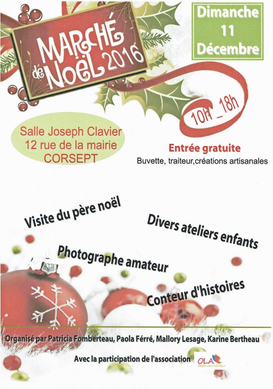 L'association OLA (obésité loire atlantique) , en coopération avec l'équipe en place de l'an dernier , organisent un marché de noel
