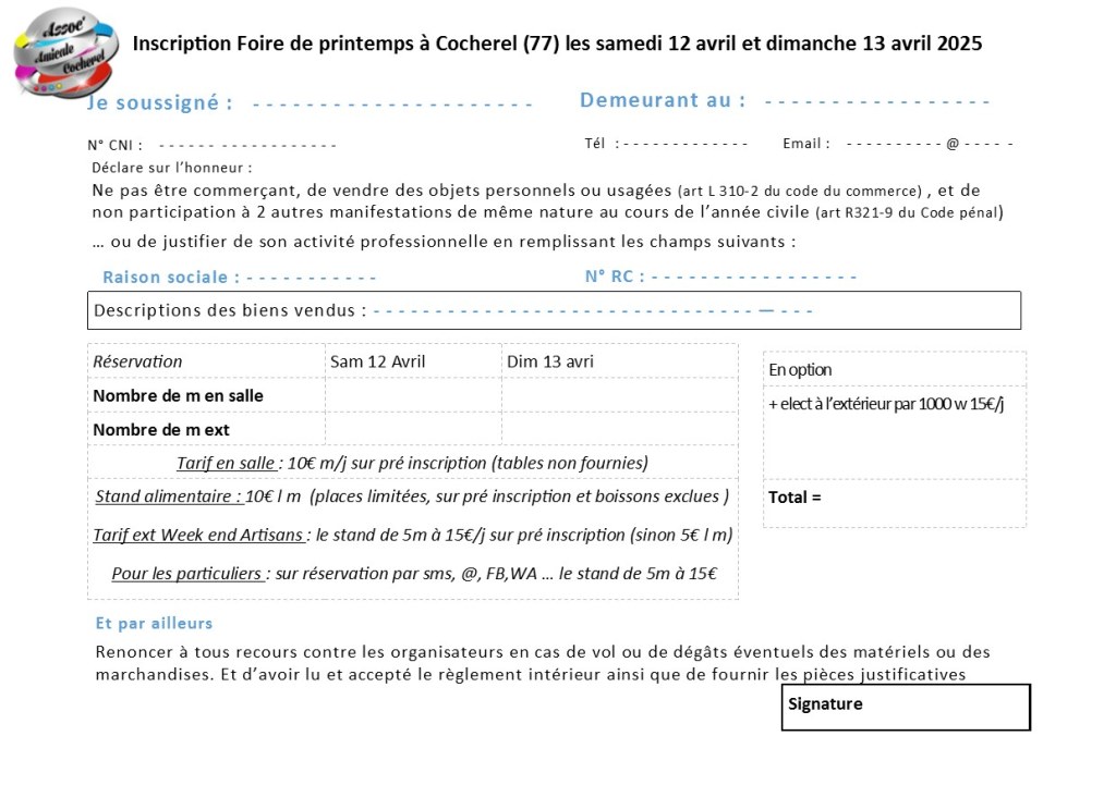 Pour les particuliers : sur réservation par sms, @, FB,WA . le stand de 5m à 15€