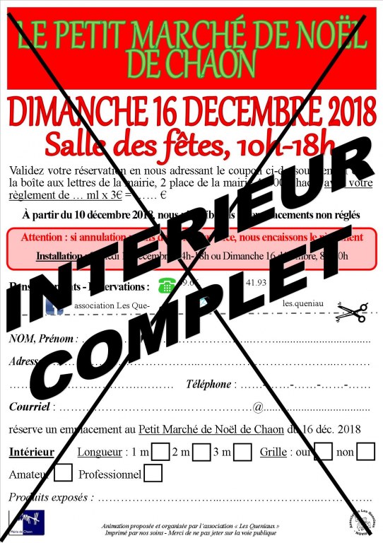 Cette page concerne les brocantes et vide greniers de Le petit marché de noël de chaon Rechercher dans la catégorie : Marché de Noël Rechercher dans la catégorie : chaon, petit, marche, noel |