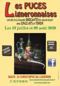 Les Puces Ligneronnaises ont lieu 2 fois par été : le 3è dimanche de juillet et le 2è dimanche d'août. En 2020, ce seront les DIMANCHES 19 JUILLET et 9 AOUT.