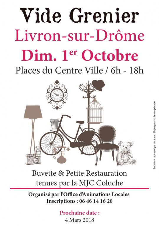 Cette page concerne les brocantes et vide greniers de Livron-Sur-Drôme - Vide Grenier Rechercher dans la catégorie : Vide grenier Rechercher dans la catégorie : grenier, drome, livron, vide |