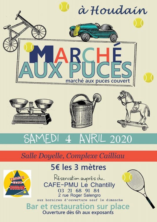 Marché aux puces couvert du tennis Club de Houdain du 4 avril 2020