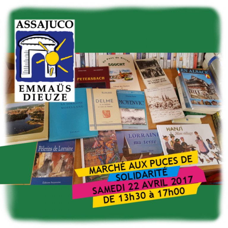 Le Samedi 22 Avril 2017, de 13h30 à 17h00, Assajuco-Emmaüs Dieuze organise un marché aux puces de solidarité.
