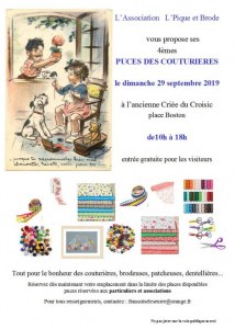 Cette page concerne les brocantes et vide greniers de Puces des couturières Rechercher dans la catégorie : Marché aux puces Rechercher dans la catégorie : couturieres, puces |
