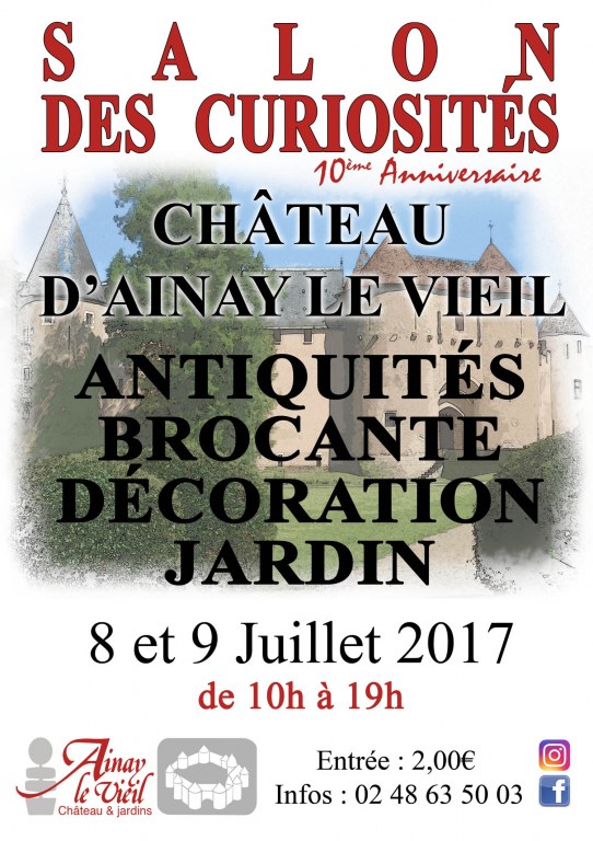 Salon d'antiquités brocante. Pour fêter notre 10ème anniversaire, vous pourrez gagner des lots à la tombola, admirer des voitures et motos anciennes datant des années 20/30. Il est aussi possible de se restaurer, de visiter le château et les jardins.