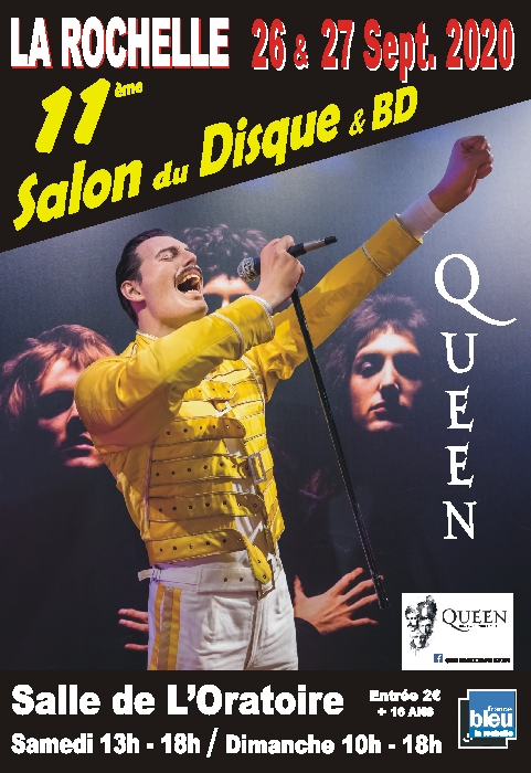 l'Evénement de la rentrée. Après le film, l'exposition Queen Salle de l'Oratoire pour le 11ème Salon du Disque et BD de La Rochelle. Après Montreux, Paris et Bruxelles en 2019 "Queen Belgium France Fan-Club" Présente le 26 et 27 septembre 2020, l'univers du groupe mythique Queen porté par Freddie Mercury avec des centaines de disques vinyles et objets inédits... Exposants de Belgique et de France avec plus de 60 000 disques. Horaires: Samedi 26/09 de 13h à 18h et dimanche 27/09 de 10h à 18h. Entrée: 2,00 € (gratuit aux moins de 16 ans). Buvette et restauration sur place. Parking et arrêt de bus devant la Salle