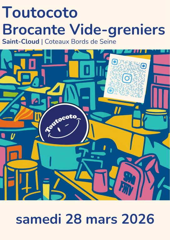La brocante Toutocoto est un rendez-vous annuel festif et convivial qui anime le quartier des Coteaux / Bords-de-Seine à Saint-Cloud chaque printemps. Plus de 2 kilomètres de stands vous attendent sur les avenues de Longchamp, Bernard Palissy et le boulevard Sénard, où des centaines d’exposants proposent des objets de seconde main, des trésors vintage, des accessoires déco, des livres… le tout dans une ambiance chaleureuse et familiale