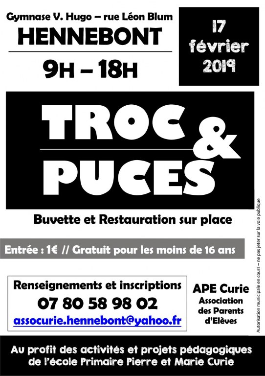 9ème troc et puces de l'école primaire CURIE organisé au gymnase Victor Hugo par l'association de parents d'élèves pour financer les sorties scolaires des enfants de l'école.