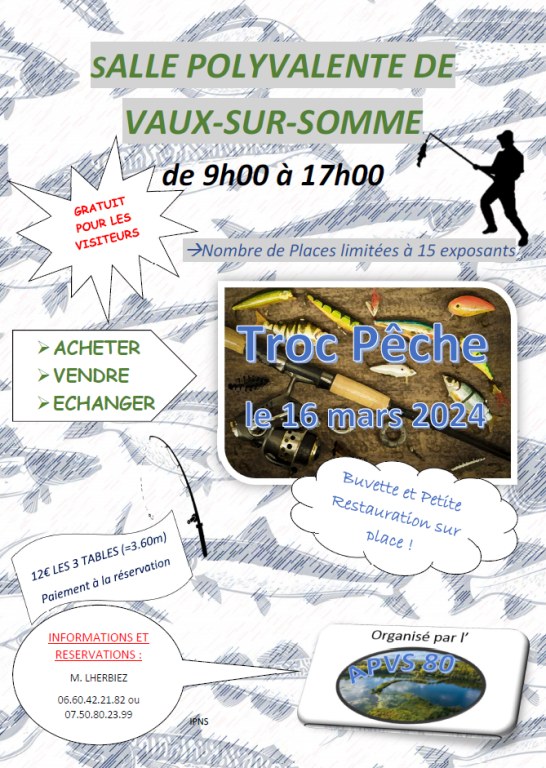 TROC PECHE - LE 16 MARS 2024 - SALLE POLYVALENTE DE VAUX-SUR-SOMME