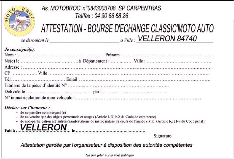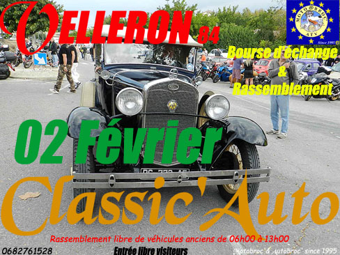 Bourse et rassemblement auto-moto organisés à VELLERON 84740 par l'association Motobroc' depuis 1995.