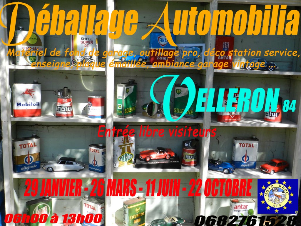 Autos anciennes, motocyclettes rétros, pièces, accessoires, outillage, fond de garage, miniatures autos & motos, jouets se rapportant au monde automobile, etc………