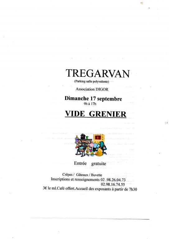 L'Association DIGOR organise un vide grenier dans la salle polyvalente de 9hà17h.