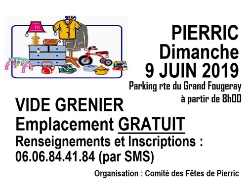 VIDE GRENIER – 44290 PIERRIC - DIMANCHE 9 JUIN 2019