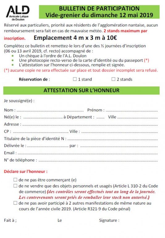 VIDE-GRENIER ALD 2019 - C'EST COMPLET ! ...